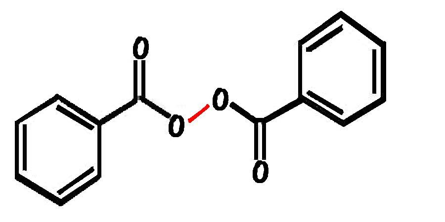 Die Verbindung zwischen den O-O im Benzoilperoxid kann relativ
