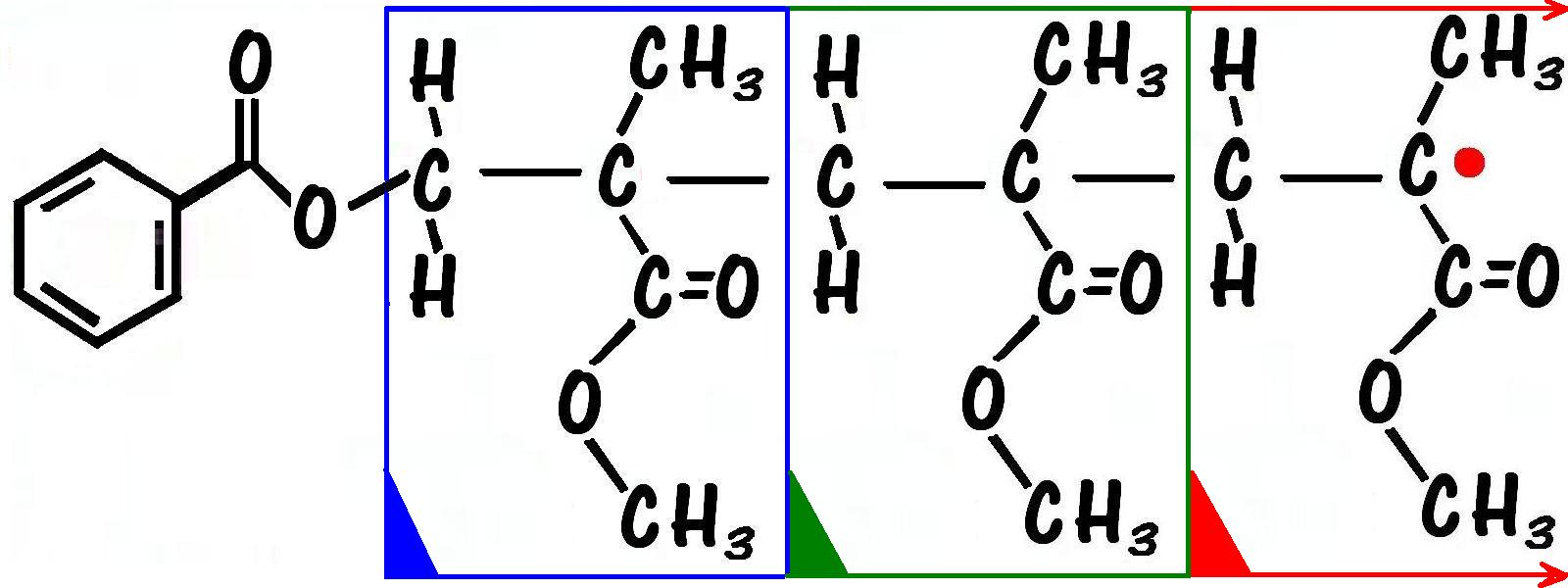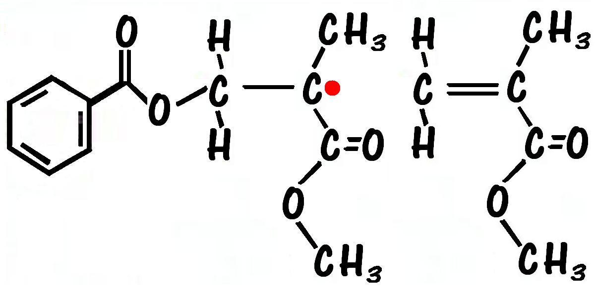 des Benzoilperoxids, ein Elektron der Dopelbindung vom Methilmetacrilat
