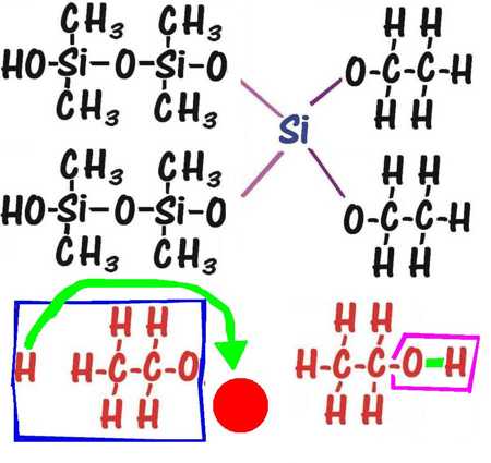 Jede Methilmetacrilat-Molekül wird eingebunden, indem die
