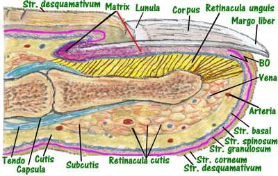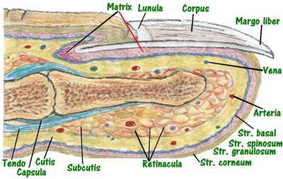 und die Häckchen auf der plantaren Seite der Nagelplatte